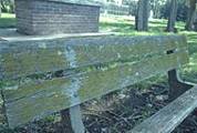 On a wooden seat |
