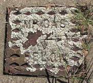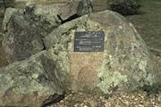 Lichens on a boulder with a metal plaque |