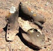 An unidentified lichen growing on an old leather shoe |