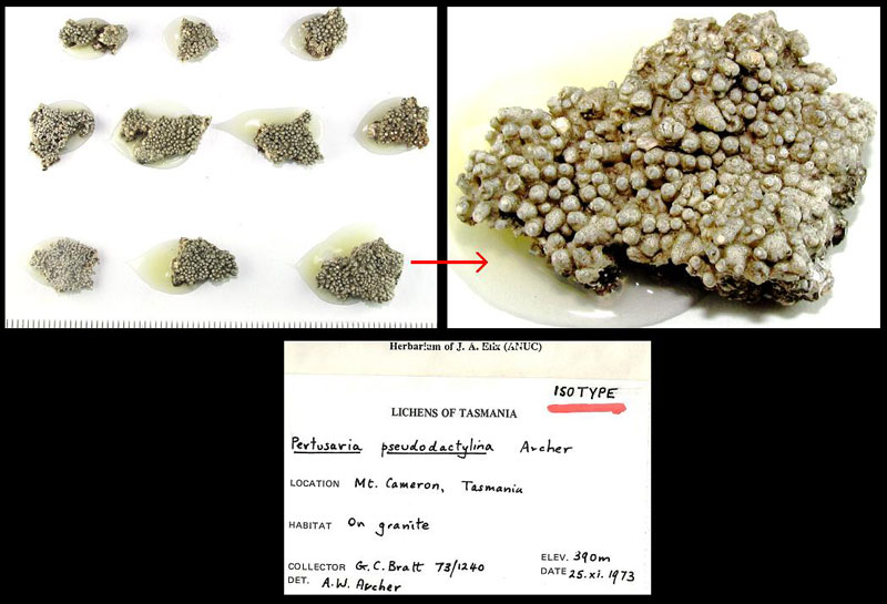 Pertusaria pseudodactylina, isotype specimen collected by G.C. Bratt.