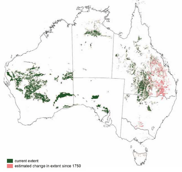 Sources: Australia's Native Vegetation - from rainforest to spinifex, map and information poster produced by the National Land & Water Audit, Natural Heritage Trust, Australian Government, 2001