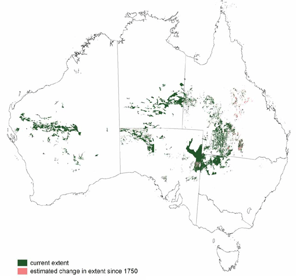 Little of the Acacia Open Woodlands have been cleared. Many areas have been modified by grazing pressure from domestic stock, feral animals and macropods.