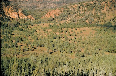 rocky areas protected from regular fire events.