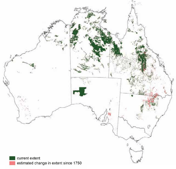 Sources: Australia's Native Vegetation - from rainforest to spinifex, map and information poster produced by the National Land & Water Audit, Natural Heritage Trust, Australian Government, 2001