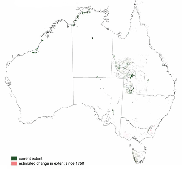 Sources: Australia's Native Vegetation - from rainforest to spinifex, map and information poster produced by the National Land & Water Audit, Natural Heritage Trust, Australian Government, 2001