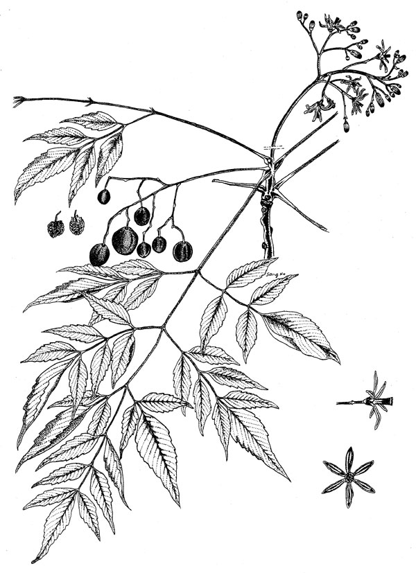 Neem Tree, Nim Tree, Indian Lilac, Persian Lilac, Bead Tree The tree has lilac-coloured flowers and olive-sized poisonous yellow berries. It is used in medicine and insecticide production. |