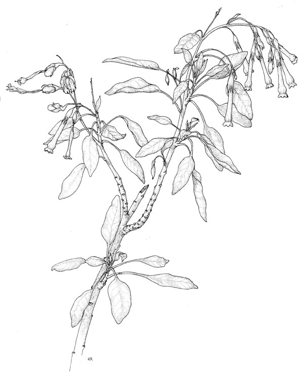 Tobacco. This plant is the tobacco of commerce. It has toxic properties. The colourful tobacco cultivars in suburban gardens have similar toxic properties. |