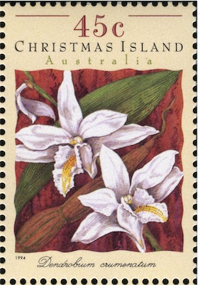 This orchid is common on trees throughout Christmas Island, often in exposed positions.