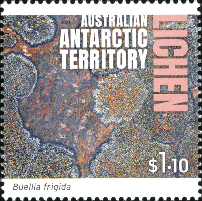 Part of a series of 4 'Antarctic Territory Lichen' stamps.