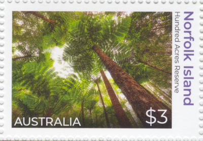 Date of issue: 17 June 2025 This is one of two Australian native plants in a series of Norfolk Island stamps. Plant: Cyathea brownii Family: CYATHACEAE Common-name: Norfolk Tree Fern The indigenous Norfolk Tree Fern, Cyathea brownii, is the tallest tree fern in the world. Hundred Acres Reserve protects part of the island's coastal forest, including examples of this remarkable plant. |