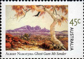 Designer: ? Engraver: ? based on painting by Albert Namatjira Plant: Corymbia aparrerinja (then known as Eucalyptus papuana)