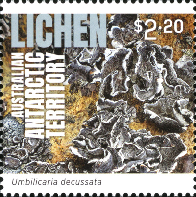 Part of a series of 4 'Antarctic Territory Lichen' stamps.