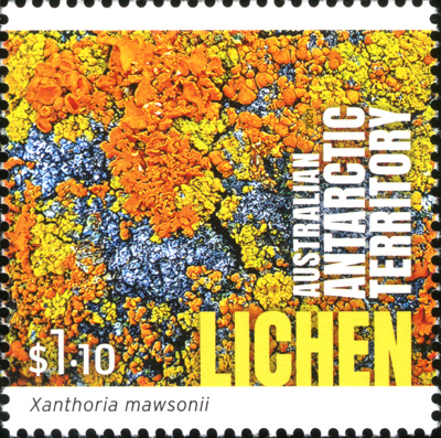 Part of a series of 4 'Antarctic Territory Lichen' stamps.
